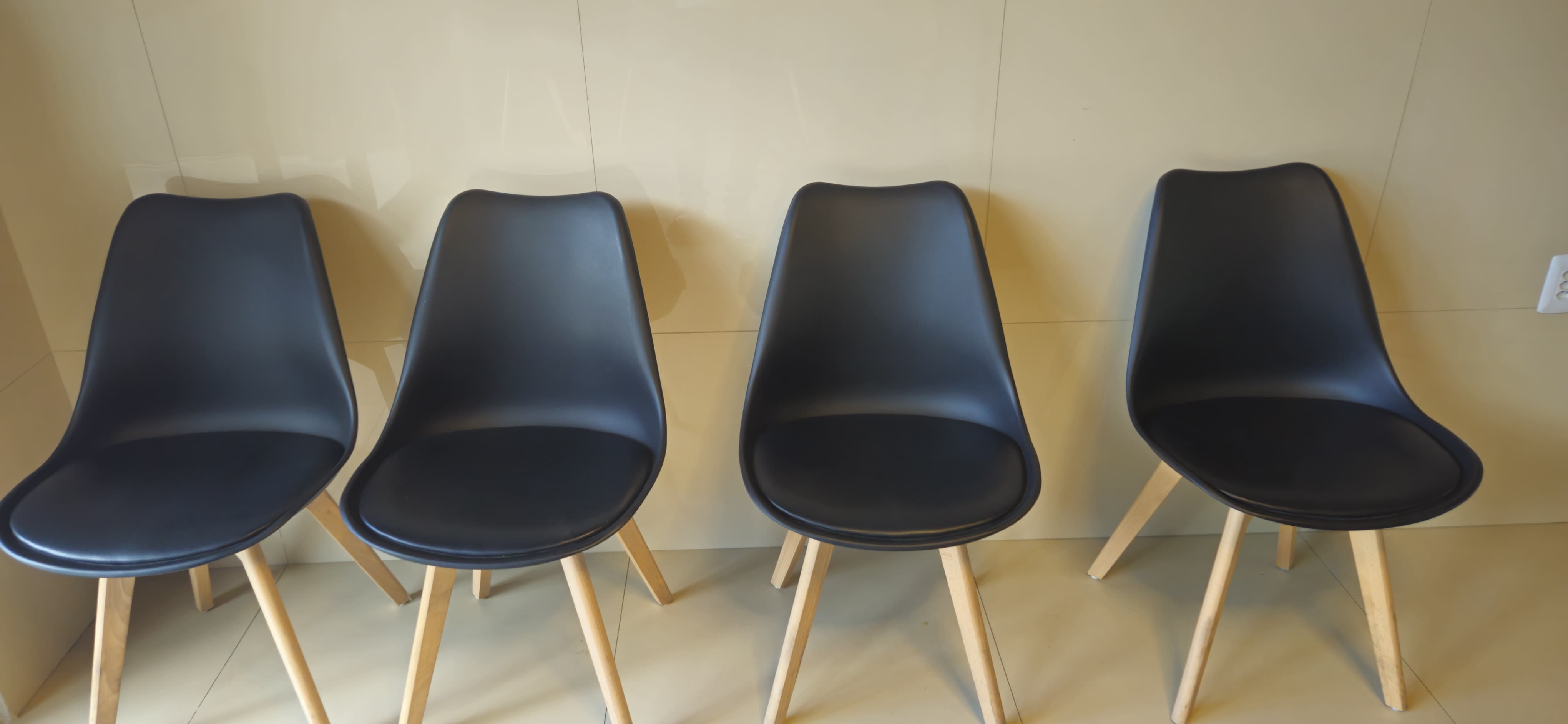 4 cadeiras pretas com suporte de madeira | Tombamentos n° 10.067, 10.070, 10.071, 10.072.